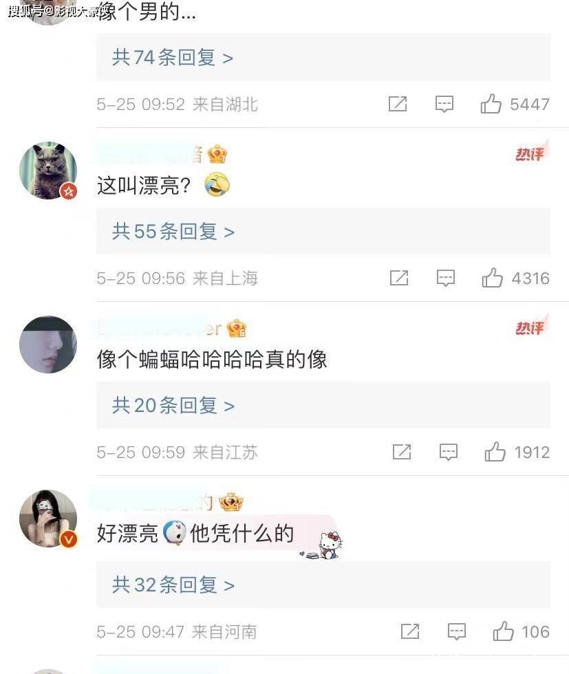 望望网友齐怎样评述的,齐是惶恐的!收敛“好漂亮”是什么意念念,他凭什么?齐以为长相像蝙蝠,像男的。就“像男的”这词条点赞就特出了5000个赞!